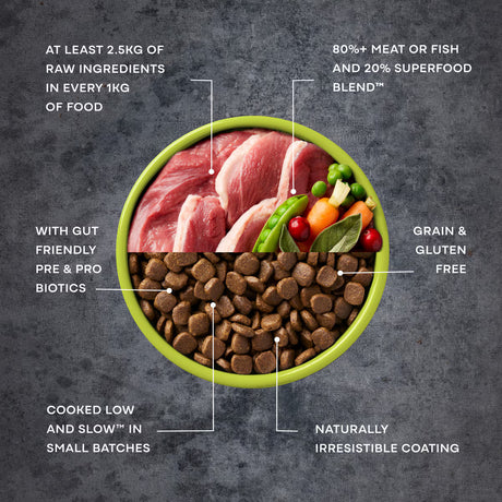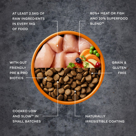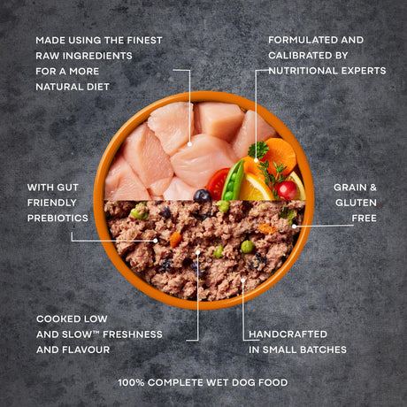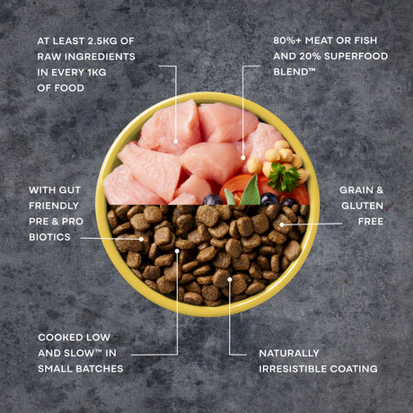 Give your dog the nutrition they deserve with this expertly crafted, grain-free recipe made with freshly prepared British free-run chicken as the #1 ingredient. Designed for adult and senior dogs, it delivers highly digestible protein for lean muscles, plus added superfoods and botanicals to support overall wellbeing.