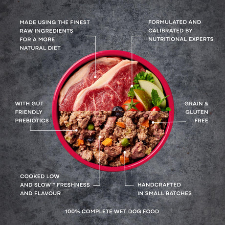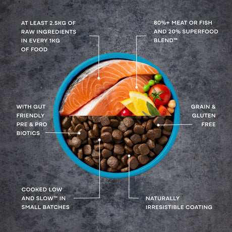 With prebiotics for gut health, salmon oil for cognitive support and a glossy coat, and essential vitamins for strong bones and teeth, this hypoallergenic formula is as nourishing as it is delicious. Proudly made in the UK to trusted standards.